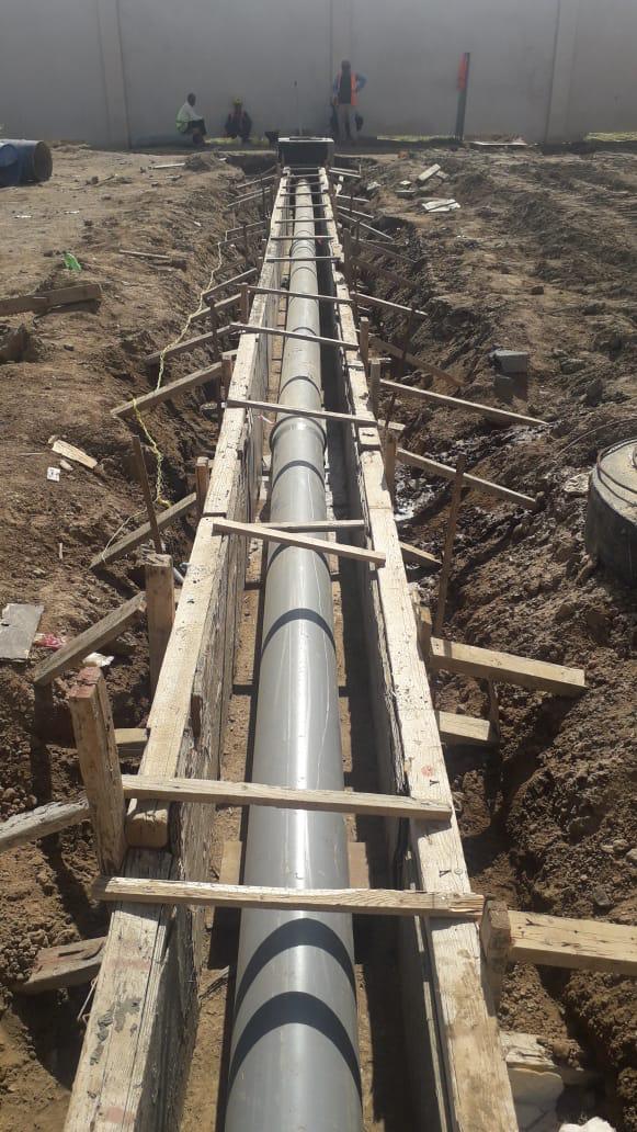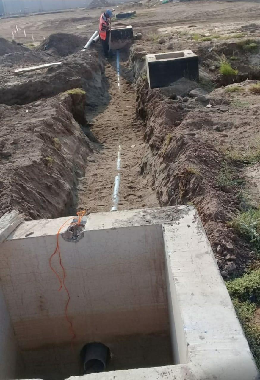 Design, supply, installation, and commissioning of sewage infrastructure, including excavation, pipe installation, manholes, residential connections, and a fully integrated pumping station, ensuring successful testing and handover.